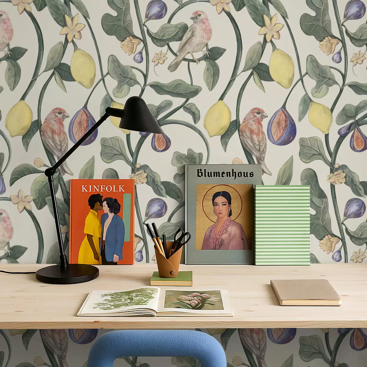 Шпалери Птахи серед листя та плодів Nr. a01107