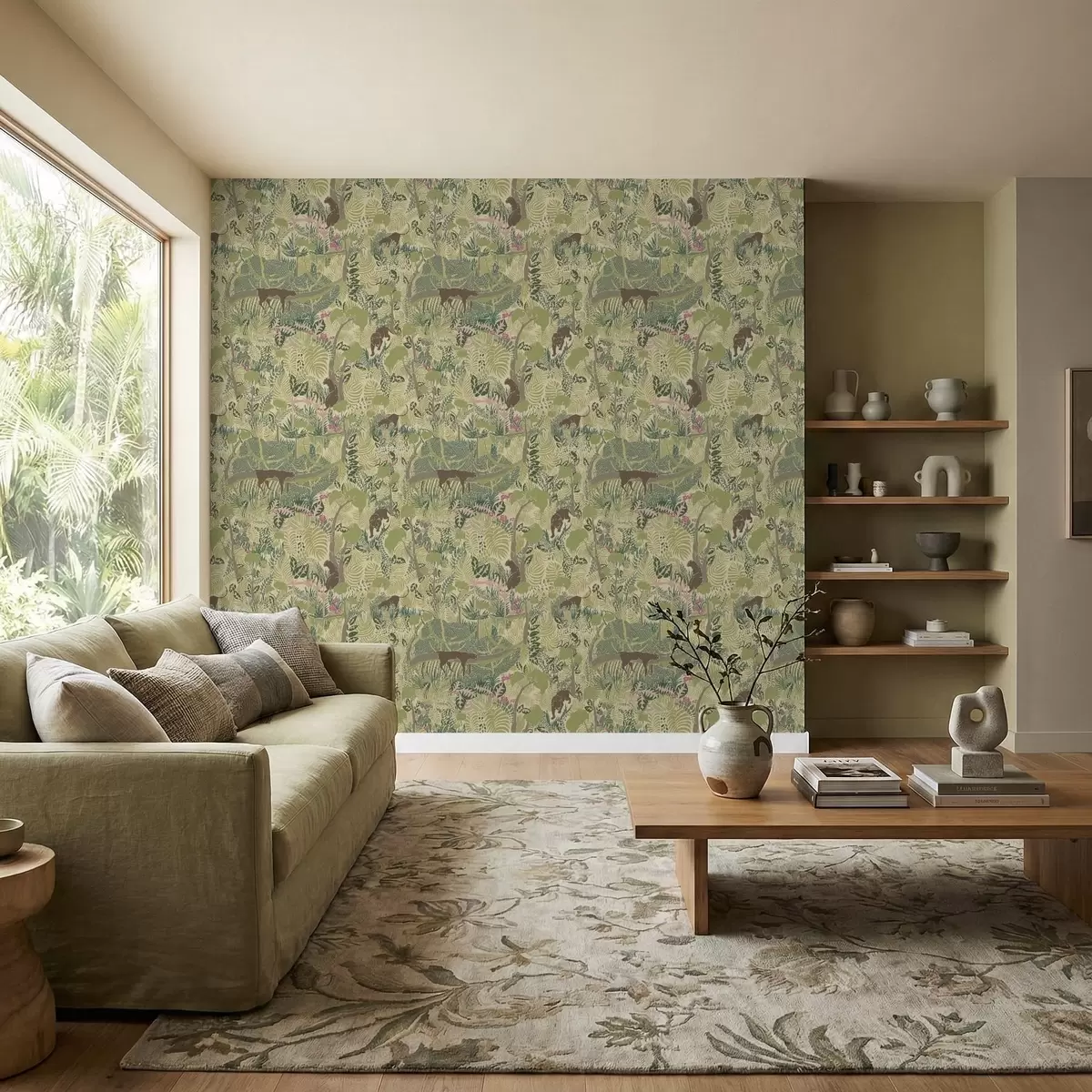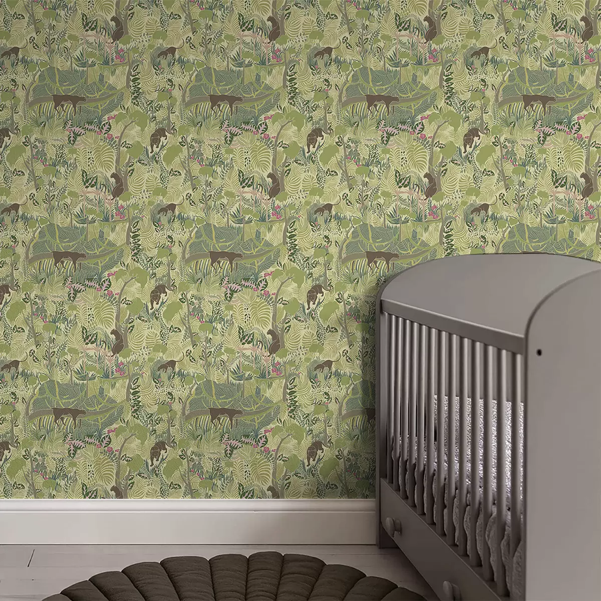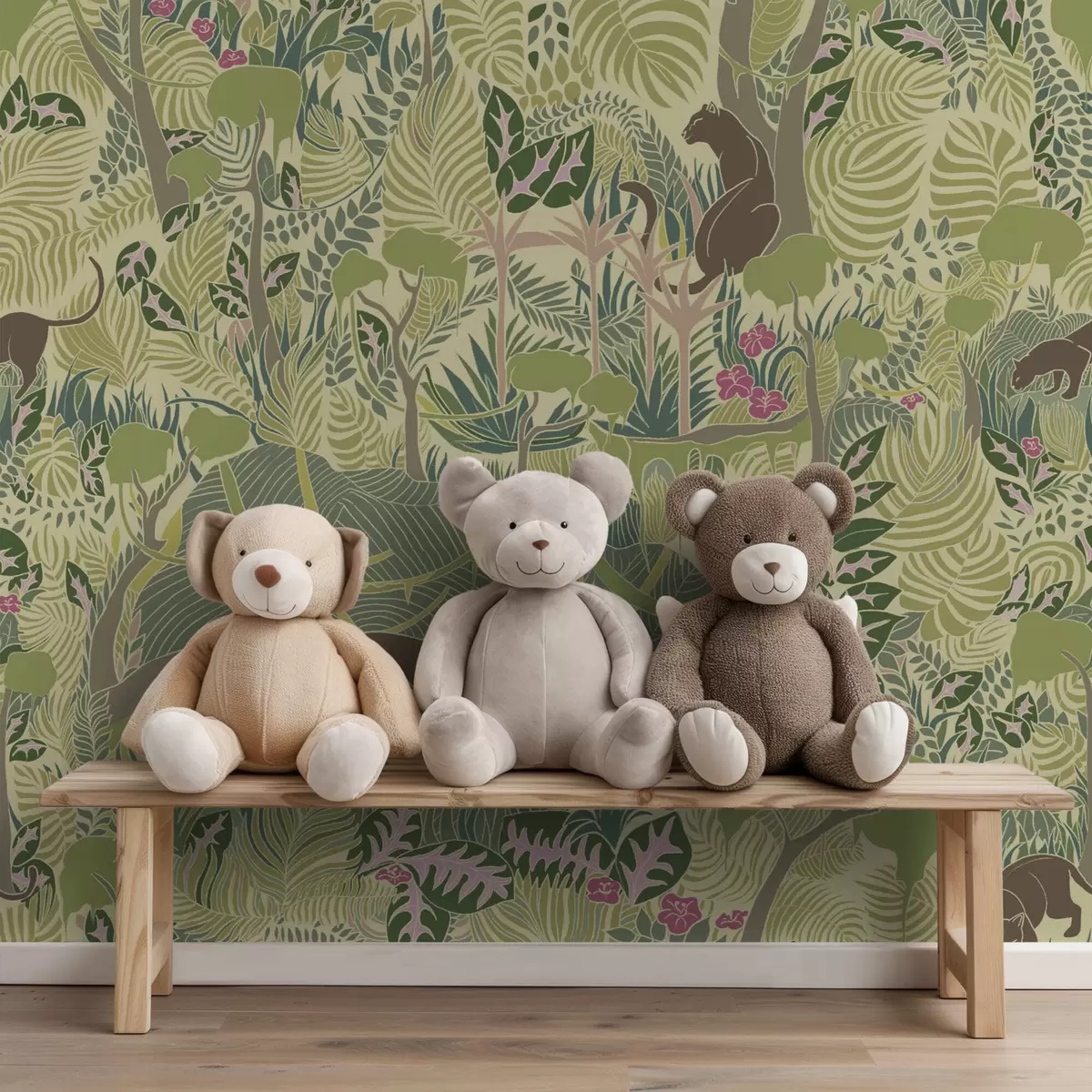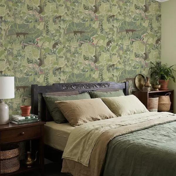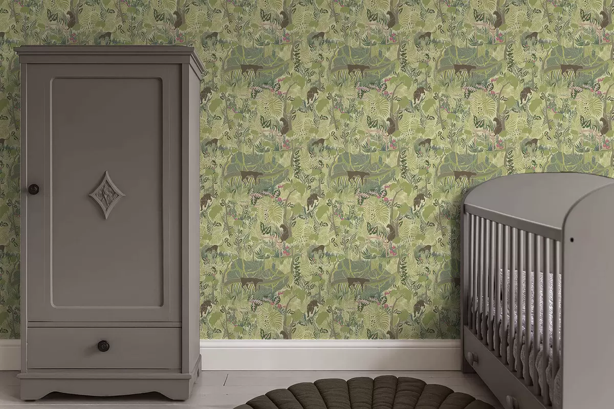 Шпалери Лісова сцена з тваринами та густим листям Nr. a01108