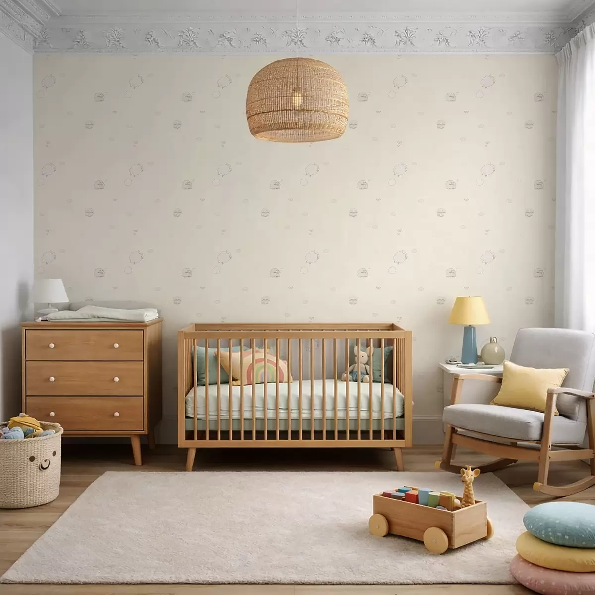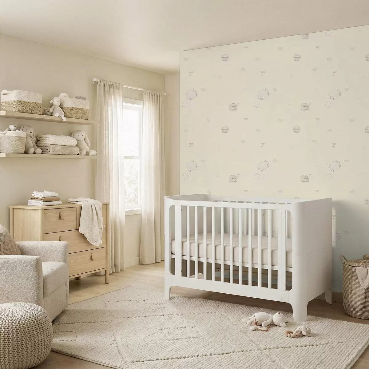Шпалери Милий візерунок з овечками та маленькими сердечками Nr. a01109