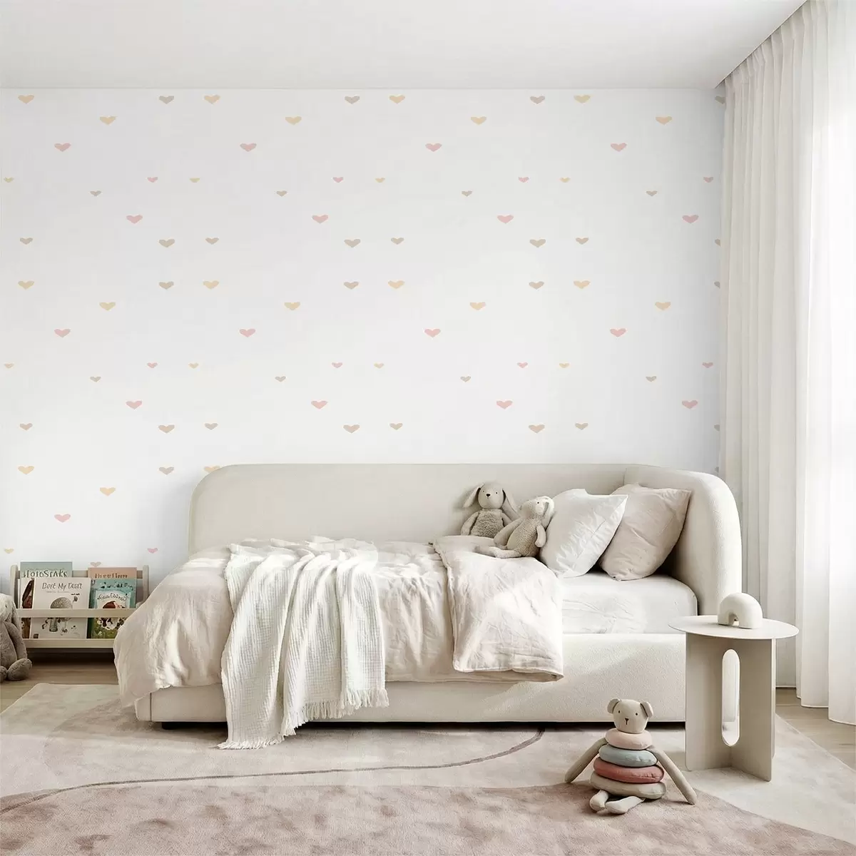 Шпалери Розкидані пастельні сердечка на світлому тлі Nr. a01110