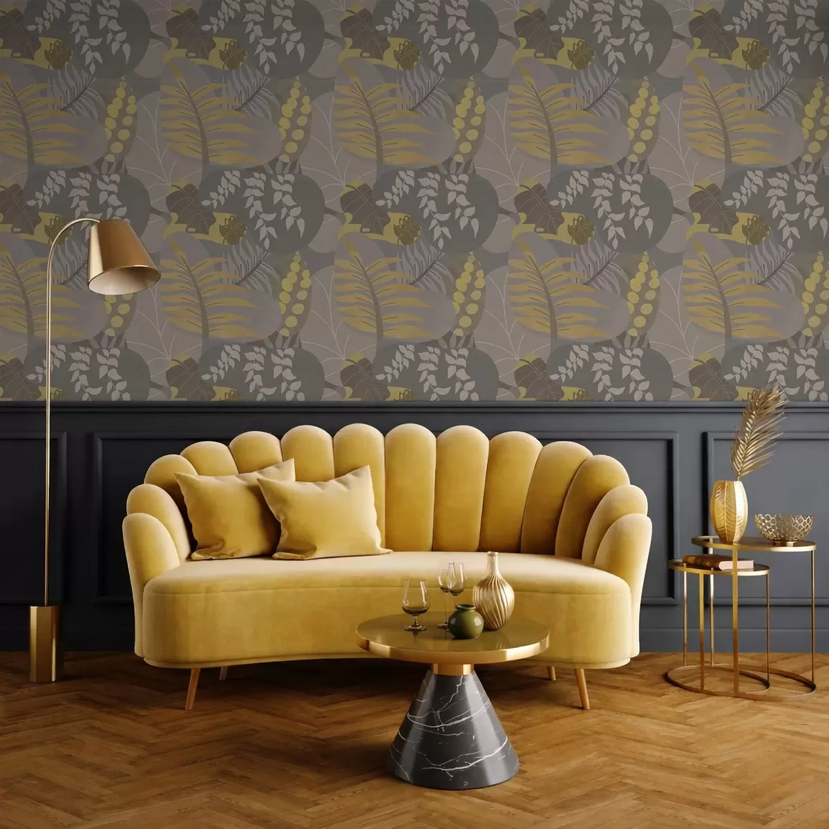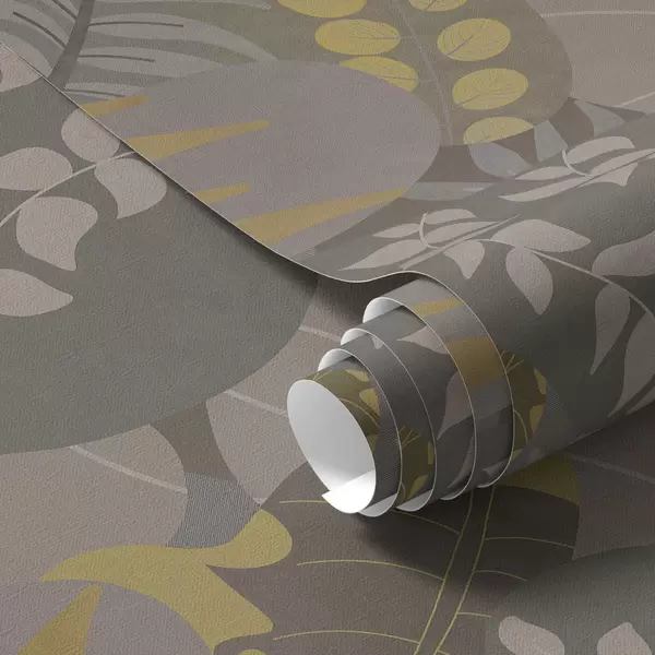 Шпалери Абстрактні листя в сірих і жовтих тонах Nr. a01112