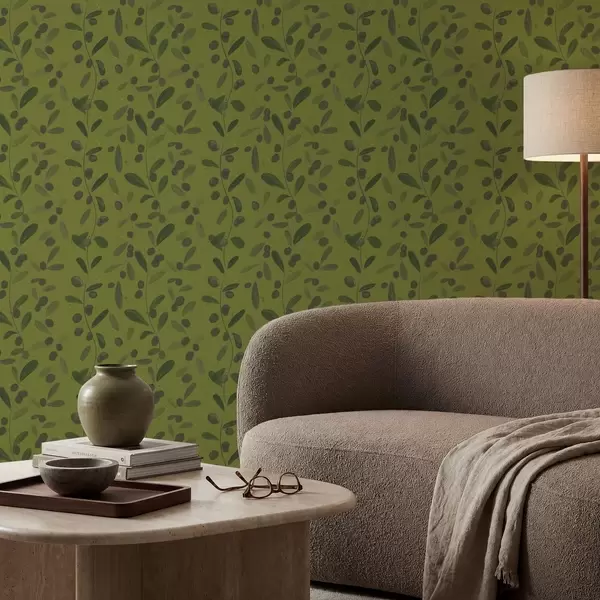 Шпалери Зелені гілки з листям і ягодами на оливковому дереві Nr. a01113