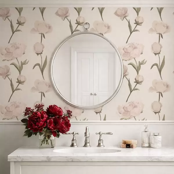 Шпалери Ніжно-рожеві півонії на світлому тлі Nr. a01114