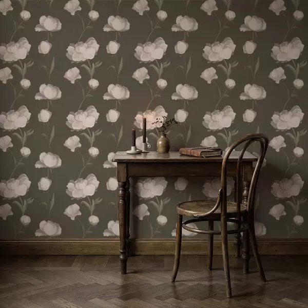 Шпалери Ніжно-рожеві півонії на темному тлі Nr. a01114v1