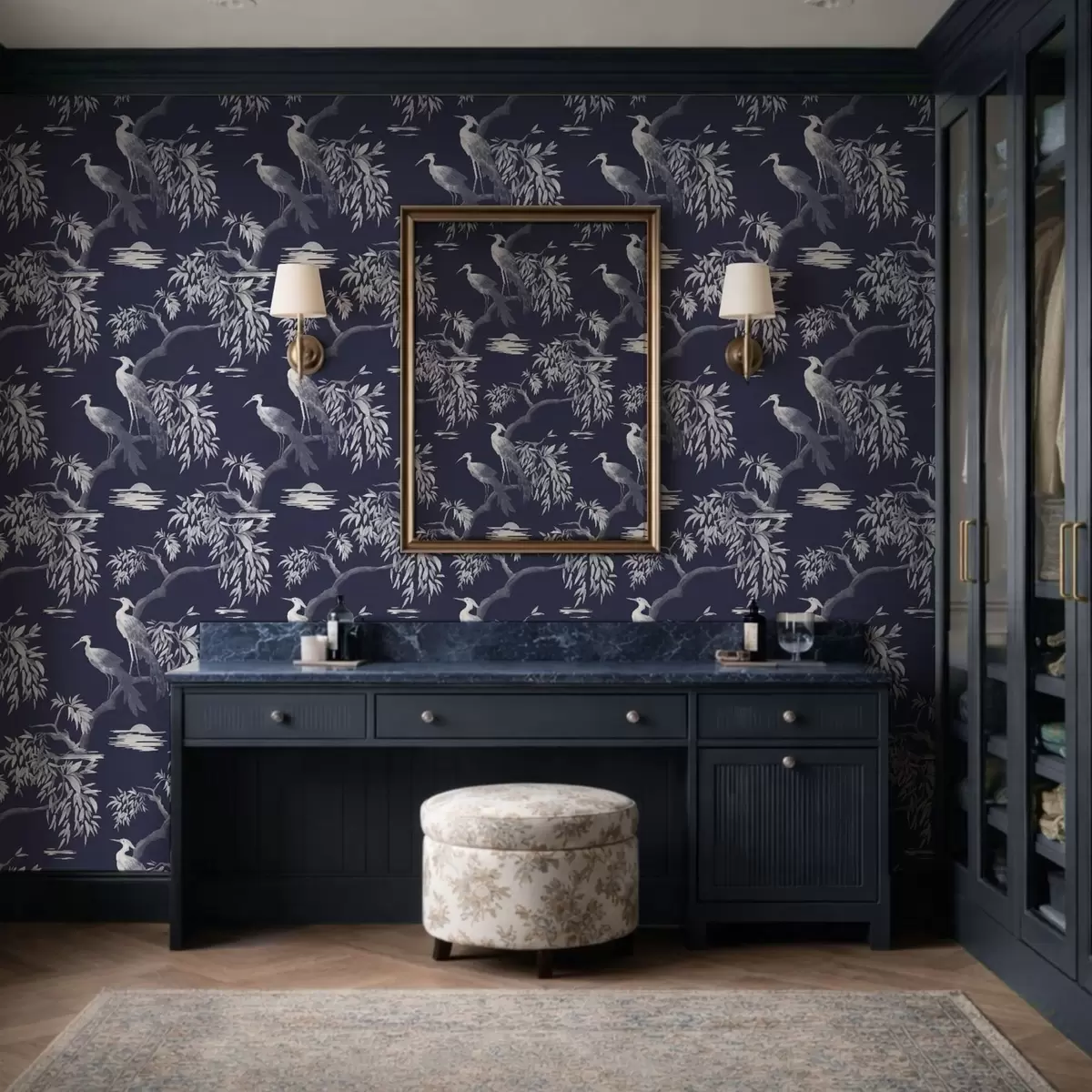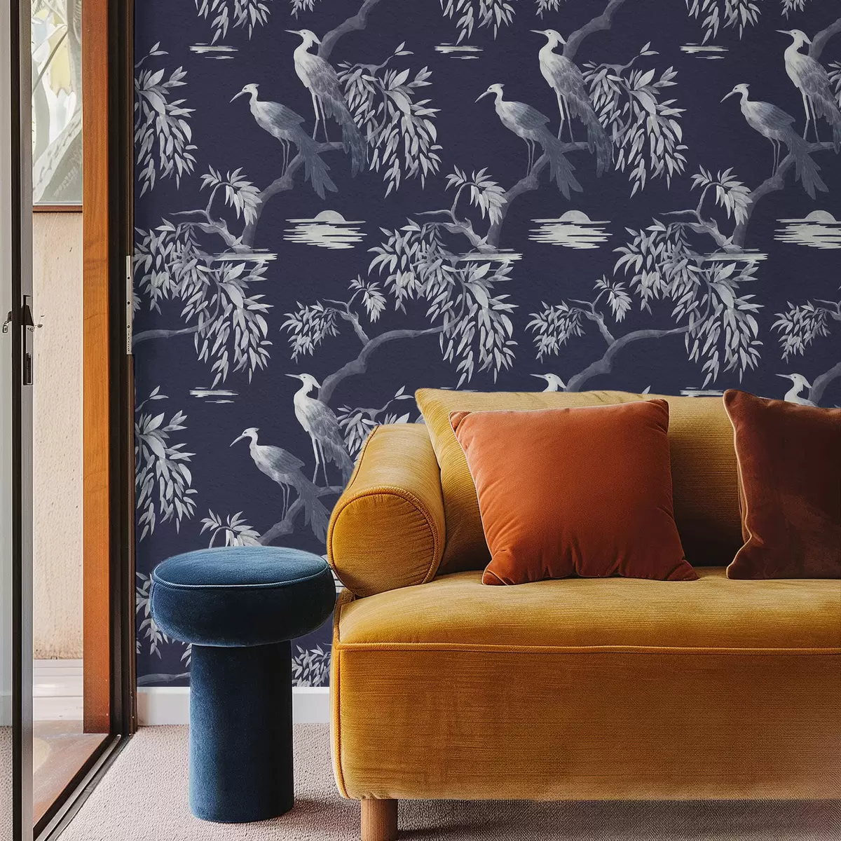 Шпалери Птахи на гілці на темно-синьому тлі Nr. a01116v1