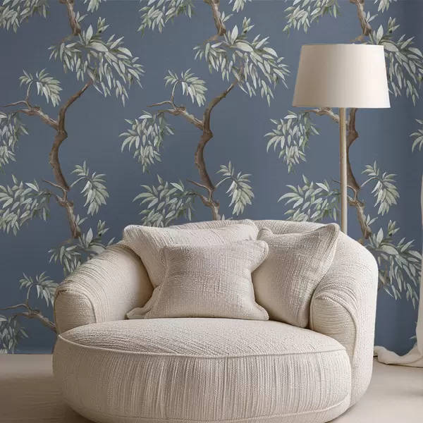 Шпалери Гілка дерева з листям на синьому тлі Nr. a01117