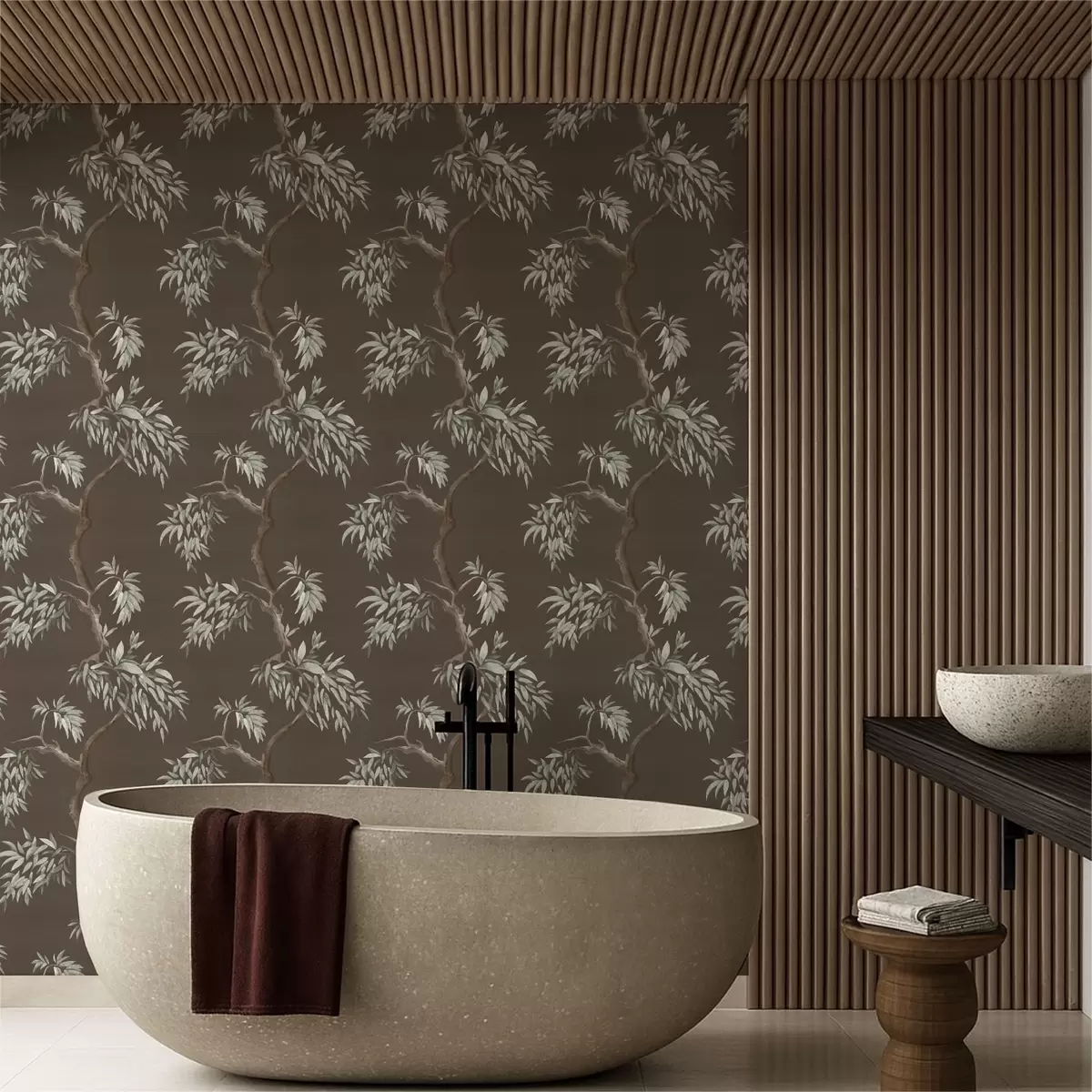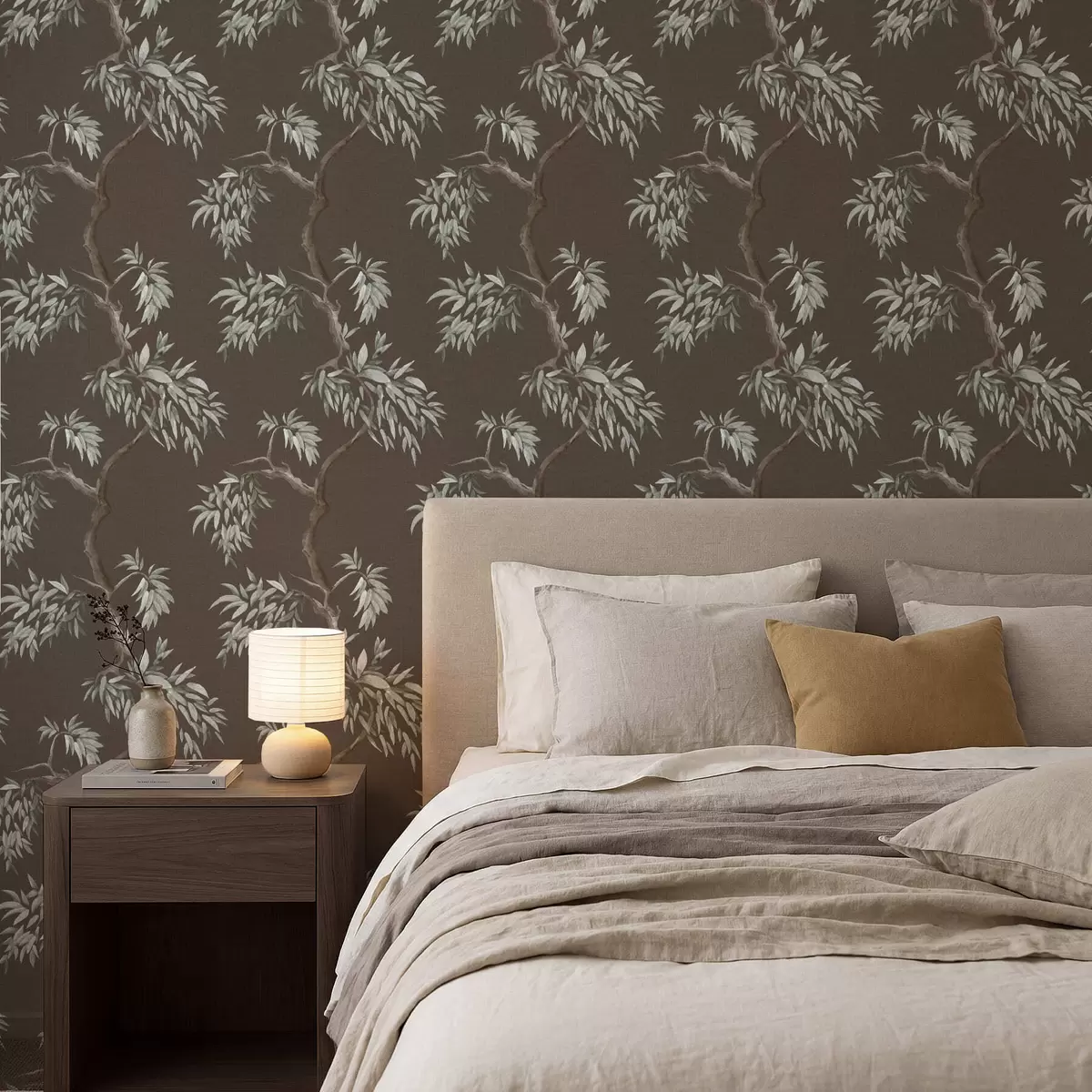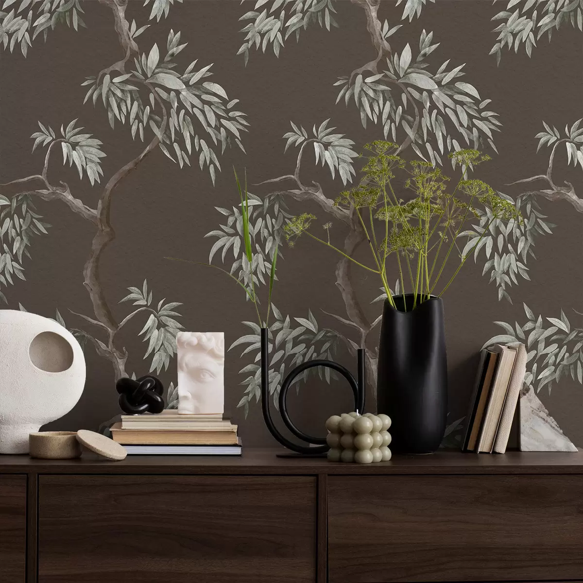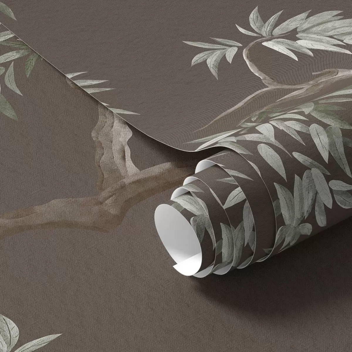 Шпалери Гілка дерева з листям на коричневому тлі Nr. a01117v3