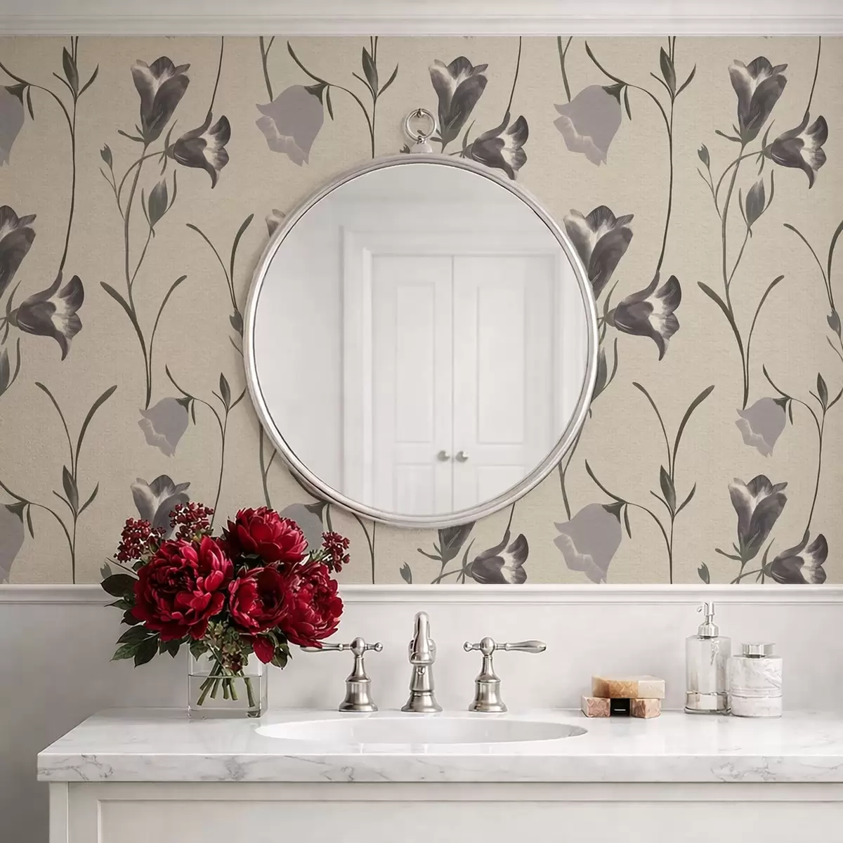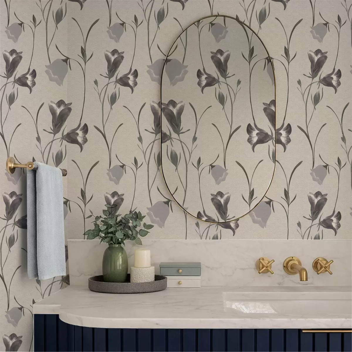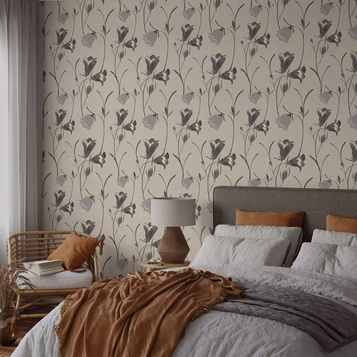 Шпалери Сірі дзвіночки на світло-бежевому тлі Nr. a01119