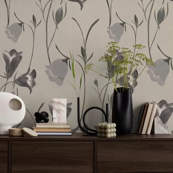Шпалери Сірі дзвіночки на світло-бежевому тлі Nr. a01119