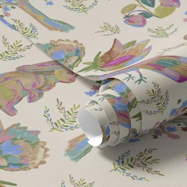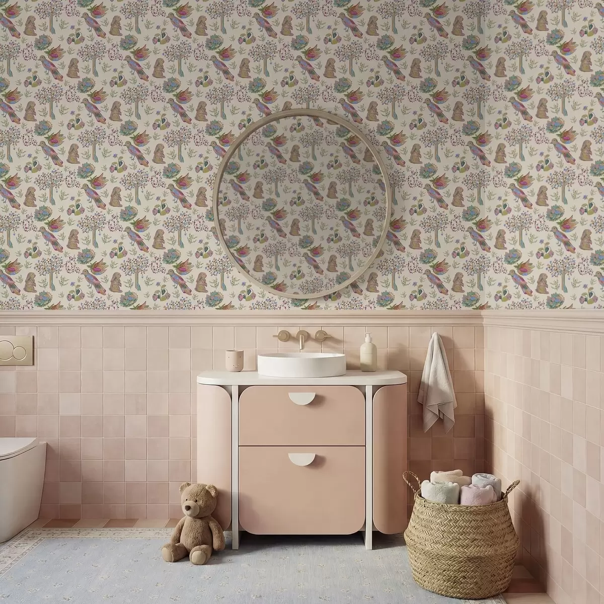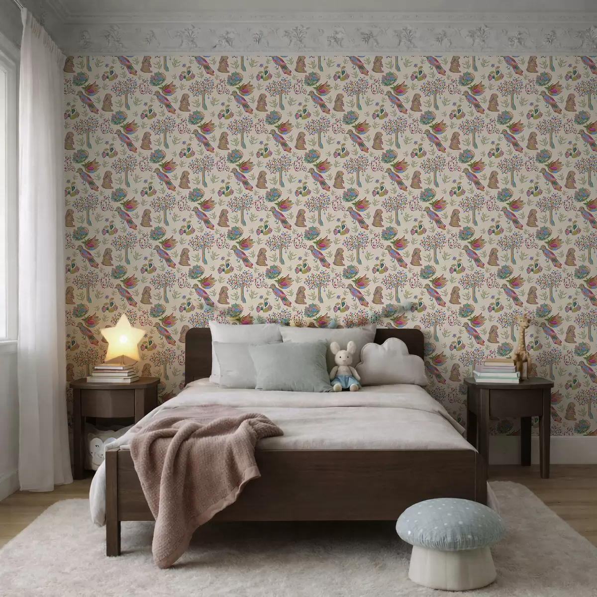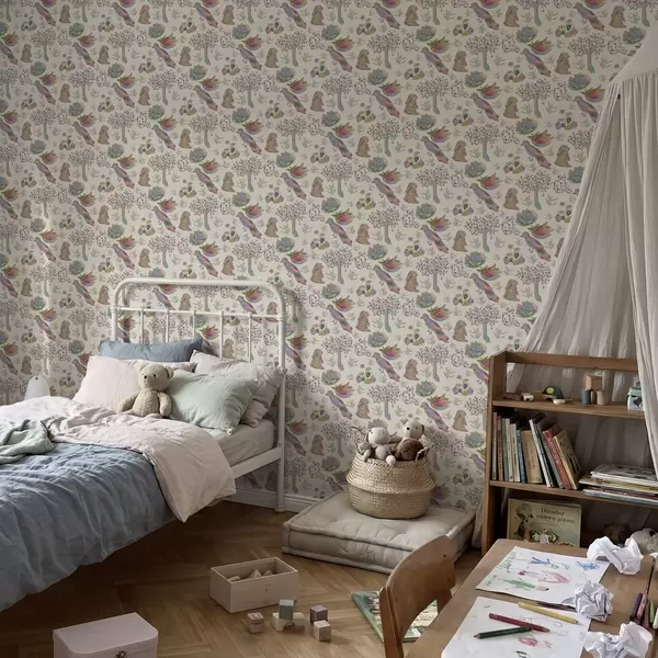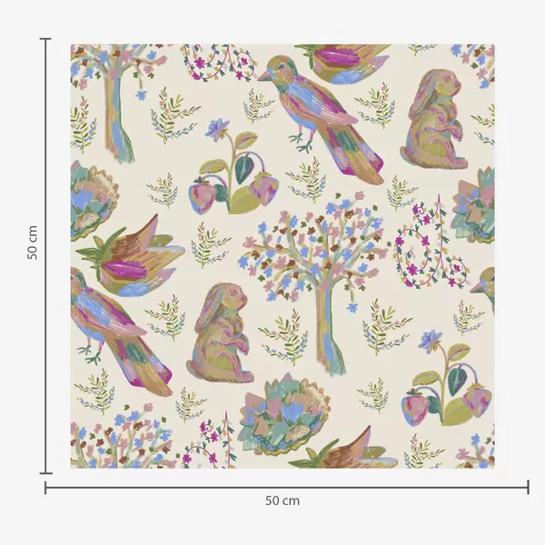 Шпалери Кольоровий дитячий малюнок з птахами та кроликами Nr. a01127