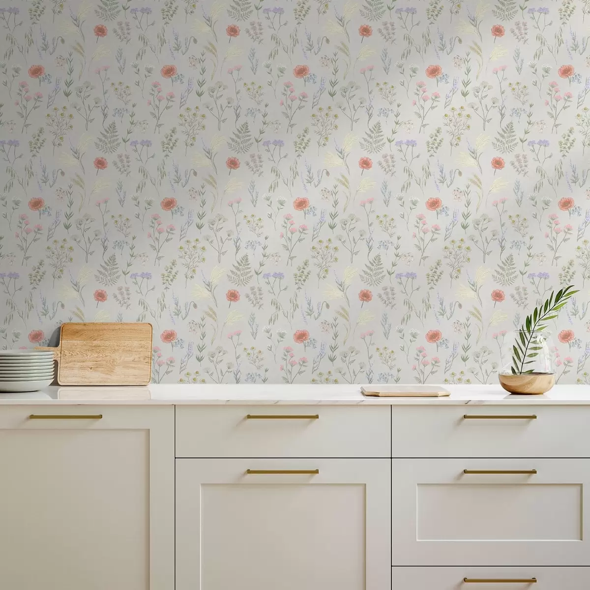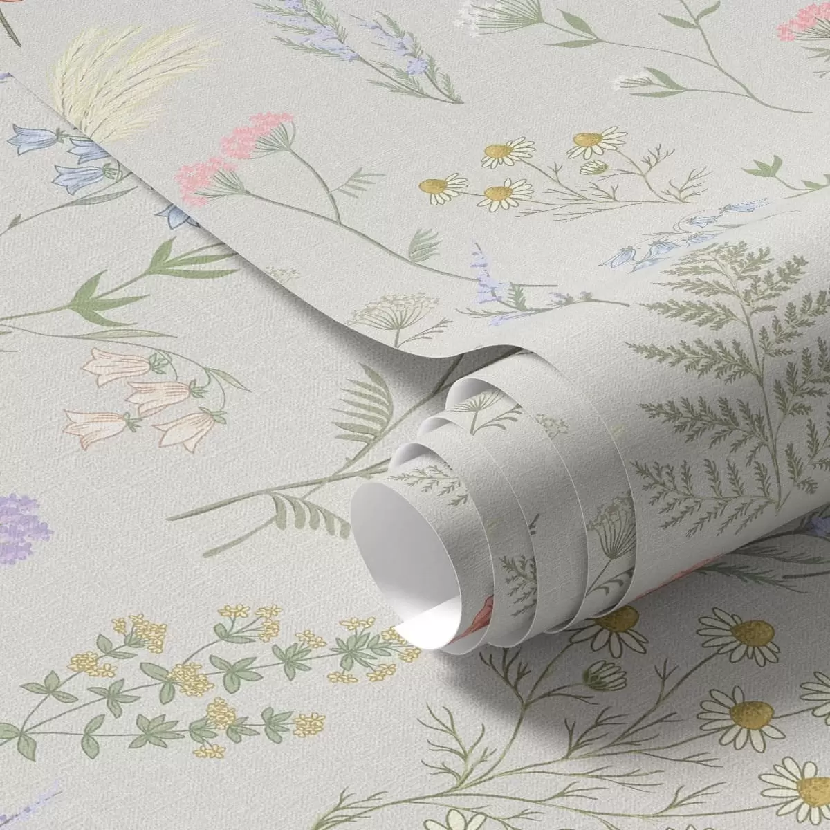 Шпалери Ніжний візерунок із польових квітів на світлому тлі Nr. a01152