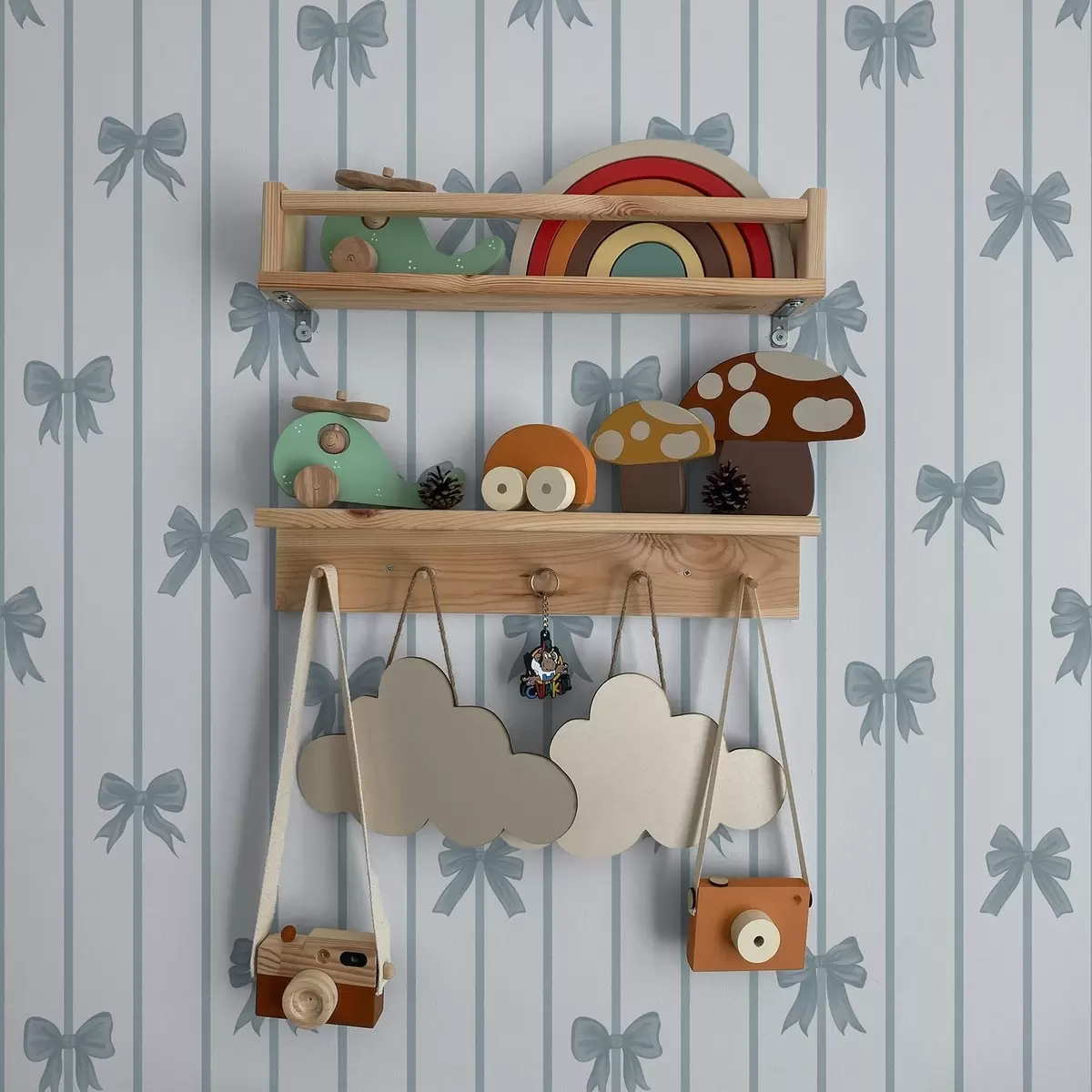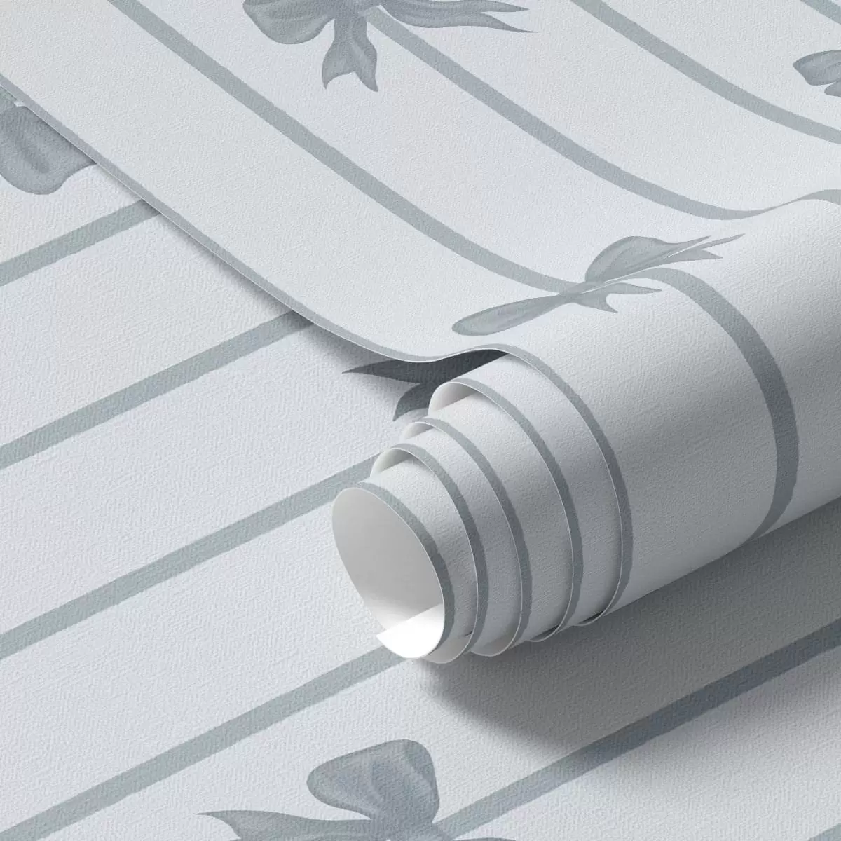 Шпалери Сині бантики на світлому смугастому тлі Nr. a01162v2