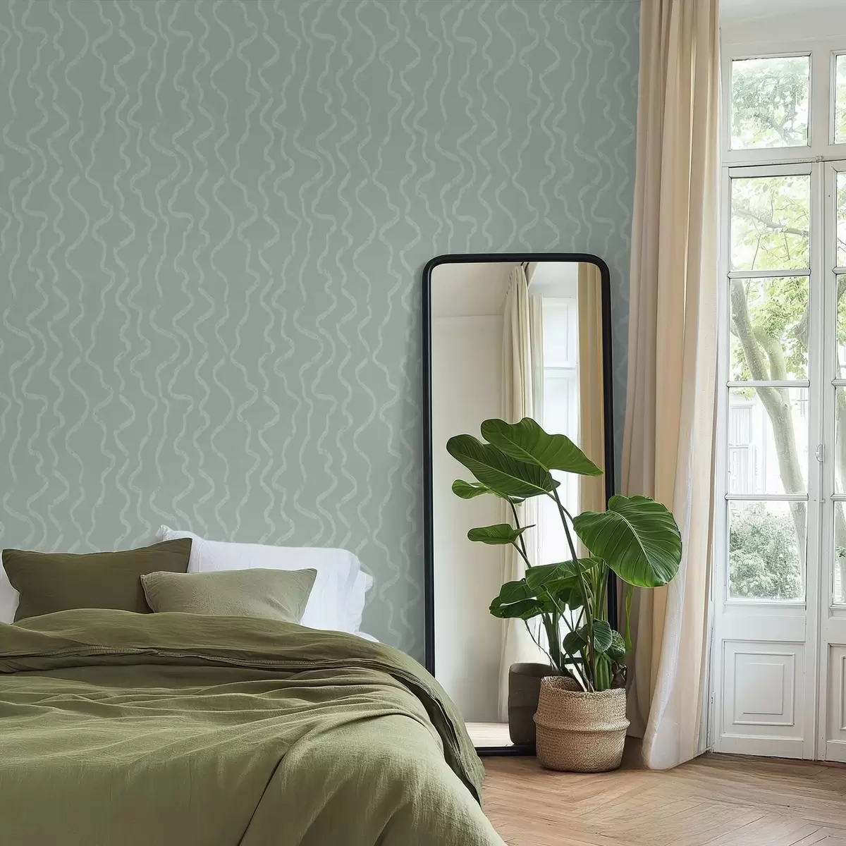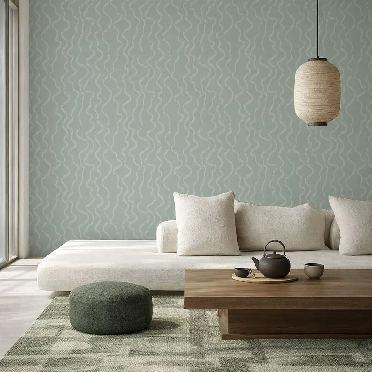 Шпалери Хвилястий світловий візерунок на зеленому тлі Nr. a01167v2