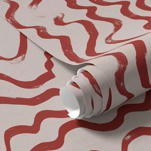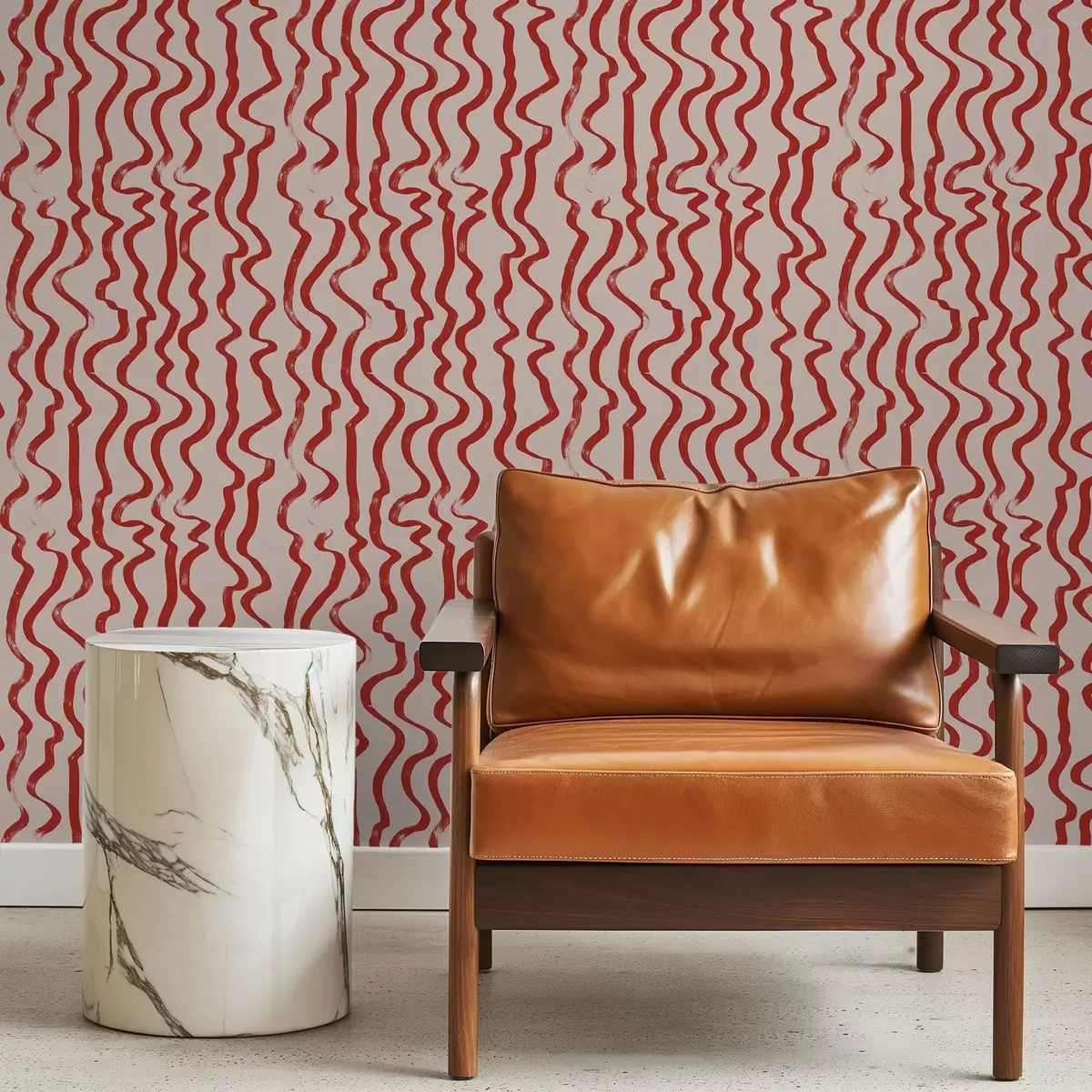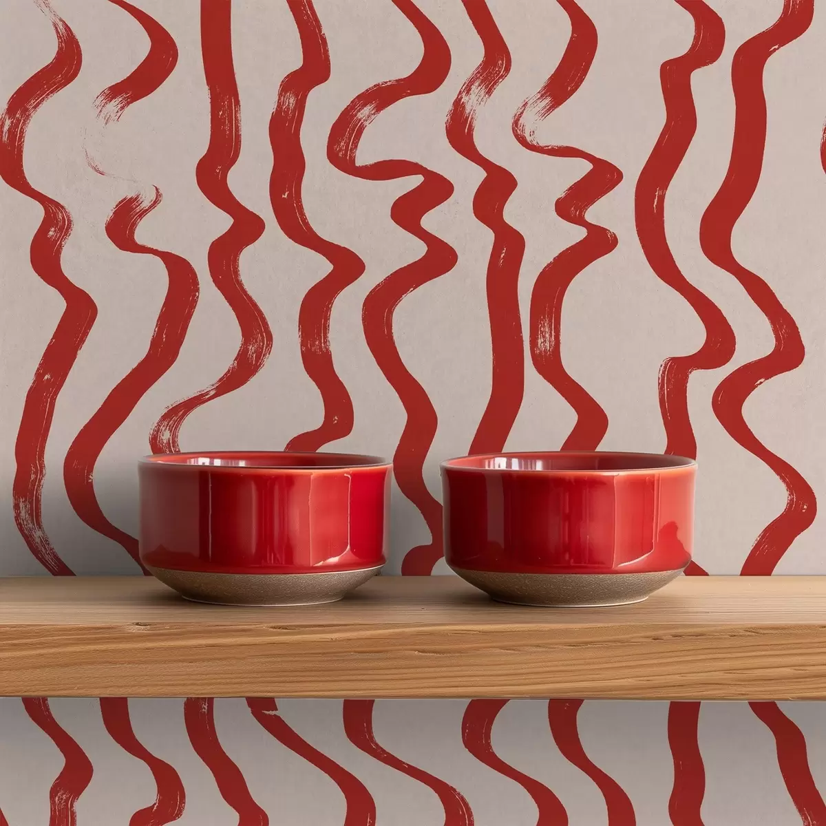 Шпалери Червоні хвилясті лінії на світлому тлі Nr. a01168