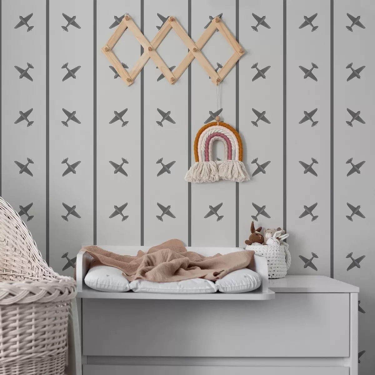 Шпалери Літаки у смугастому забарвленні з сірими відтінками Nr. a01169v2