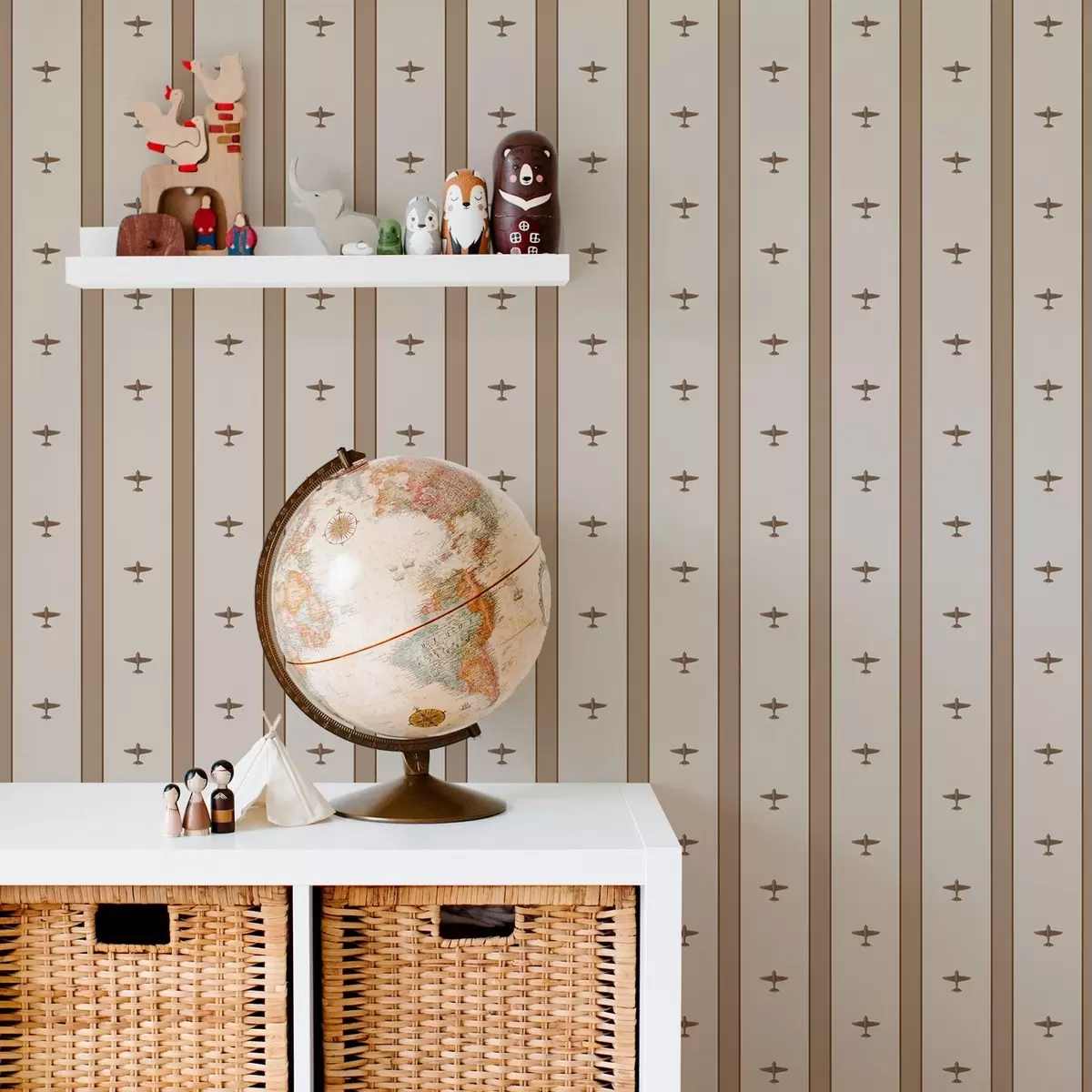 Шпалери Невеликі літаки у смужку на коричневому тлі Nr. a01171v2
