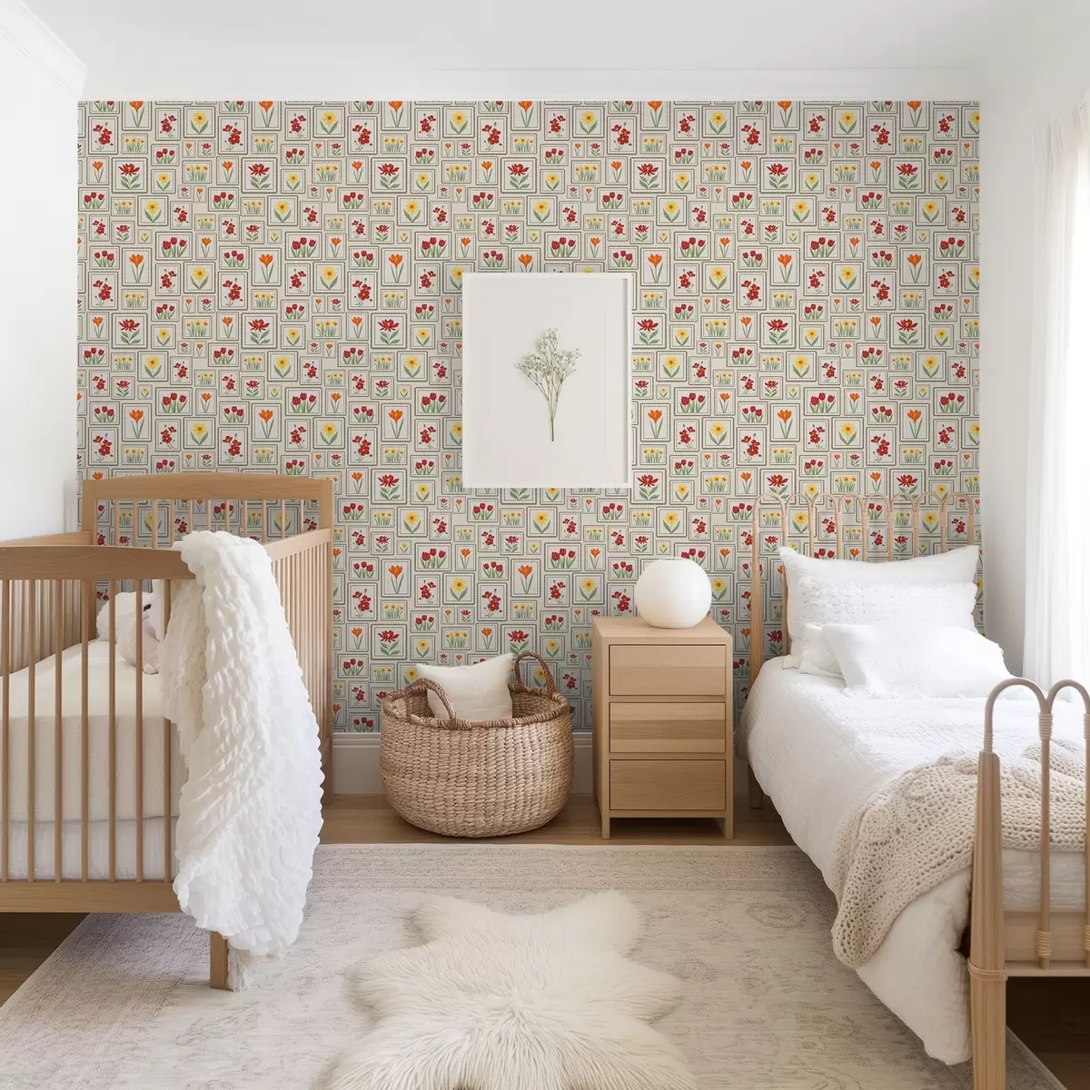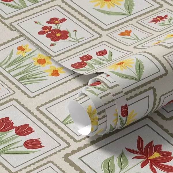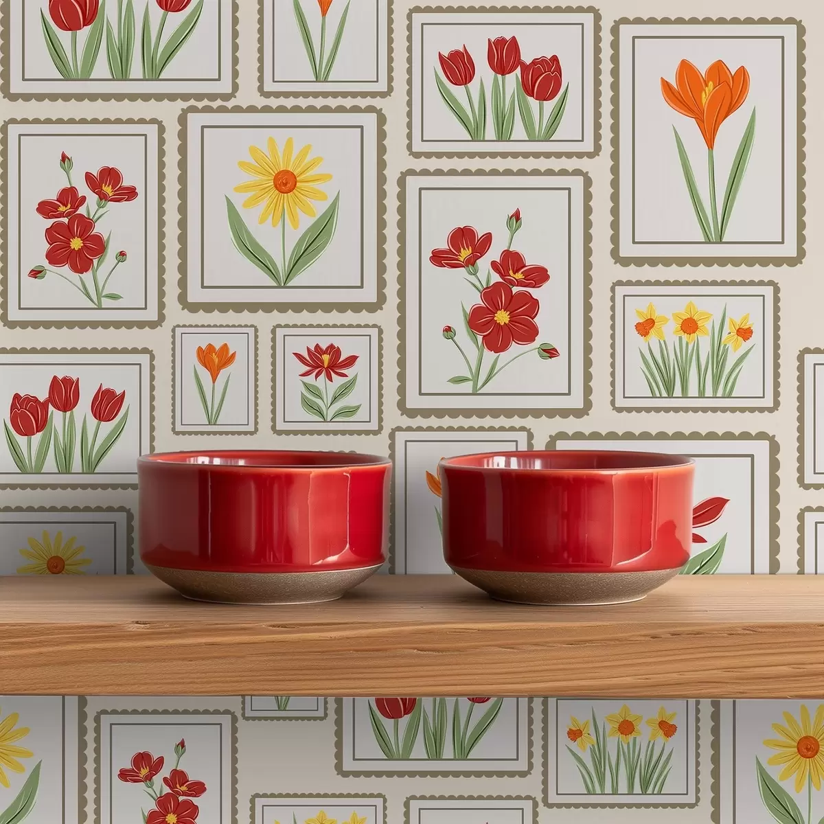 Шпалери Ілюстрації з квітами в рамах у теплих тонах Nr. a01173