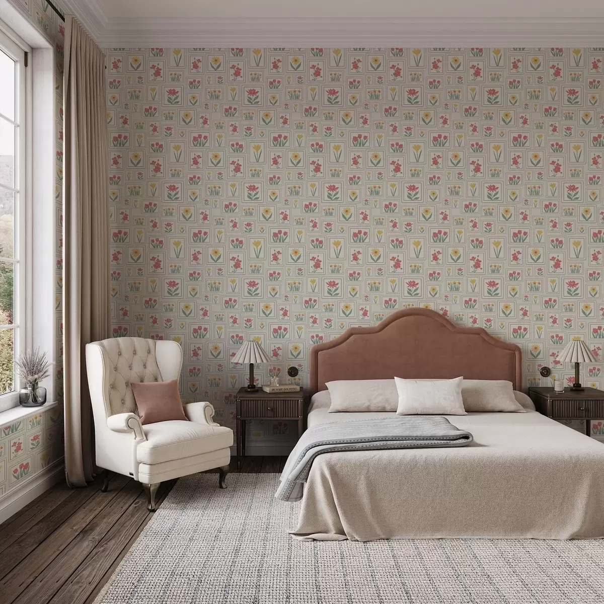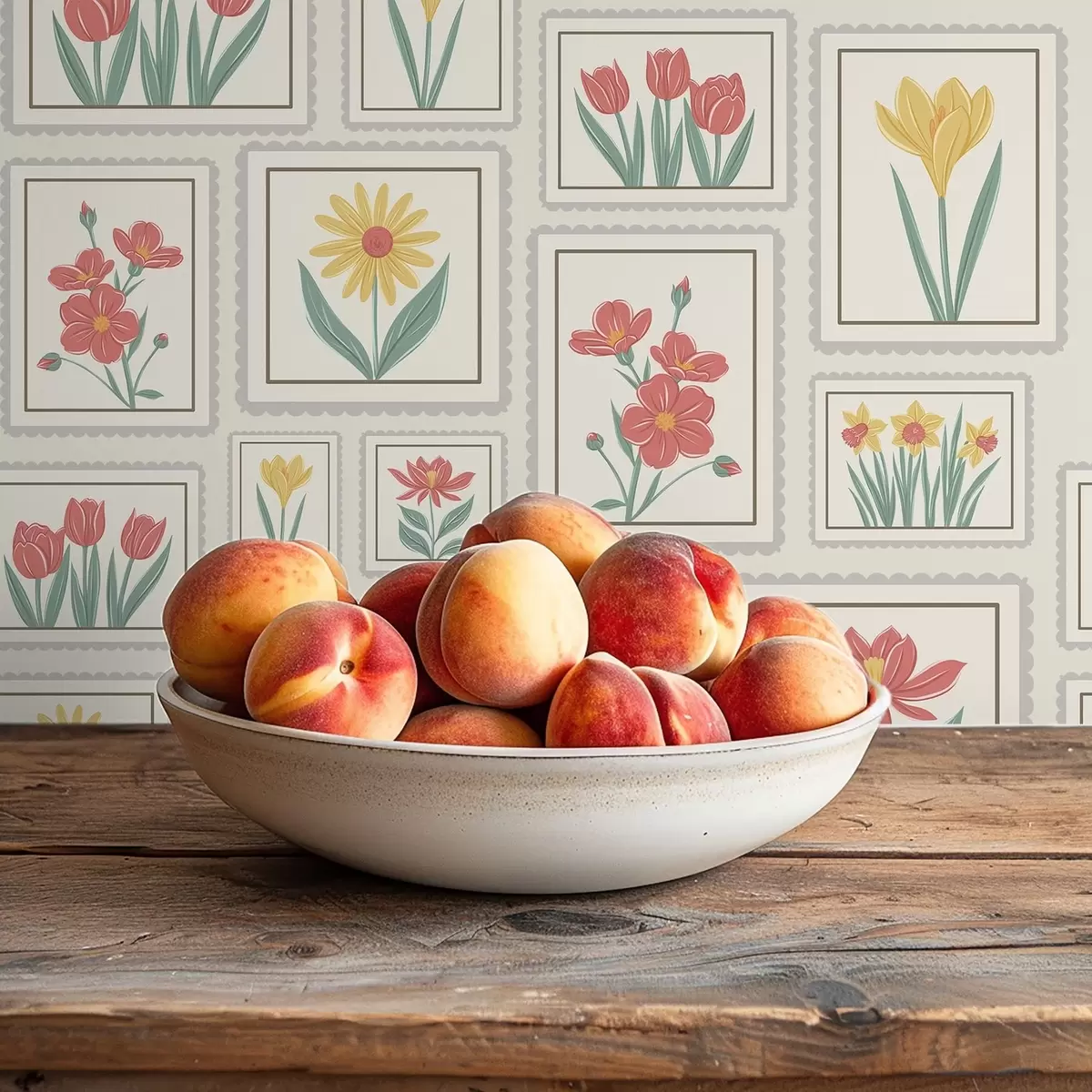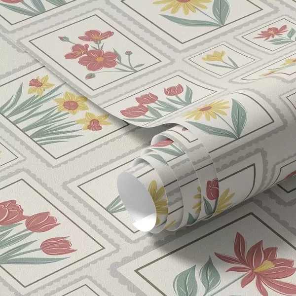 Шпалери Ілюстрації з квітами в рамці на світлому тлі Nr. a01173v1