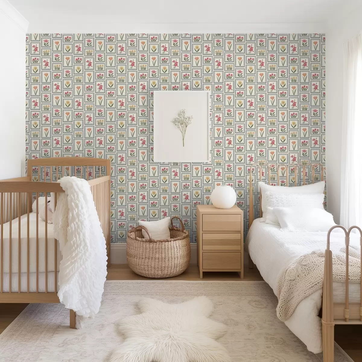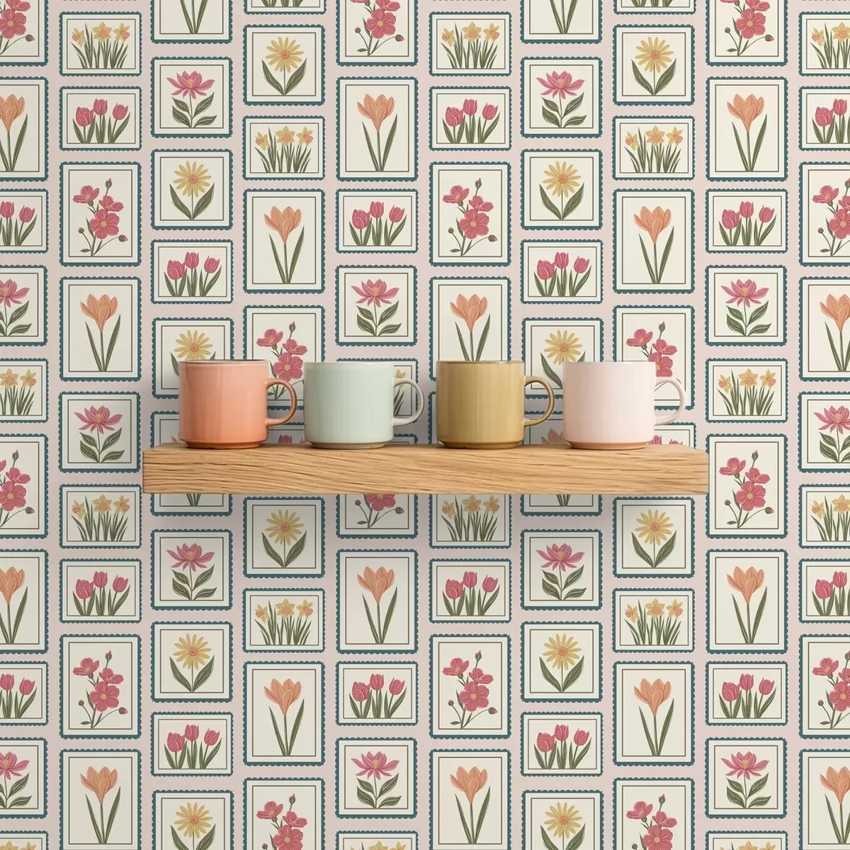 Шпалери Ілюстрації з квітами в рамці з бордюрами Nr. a01174