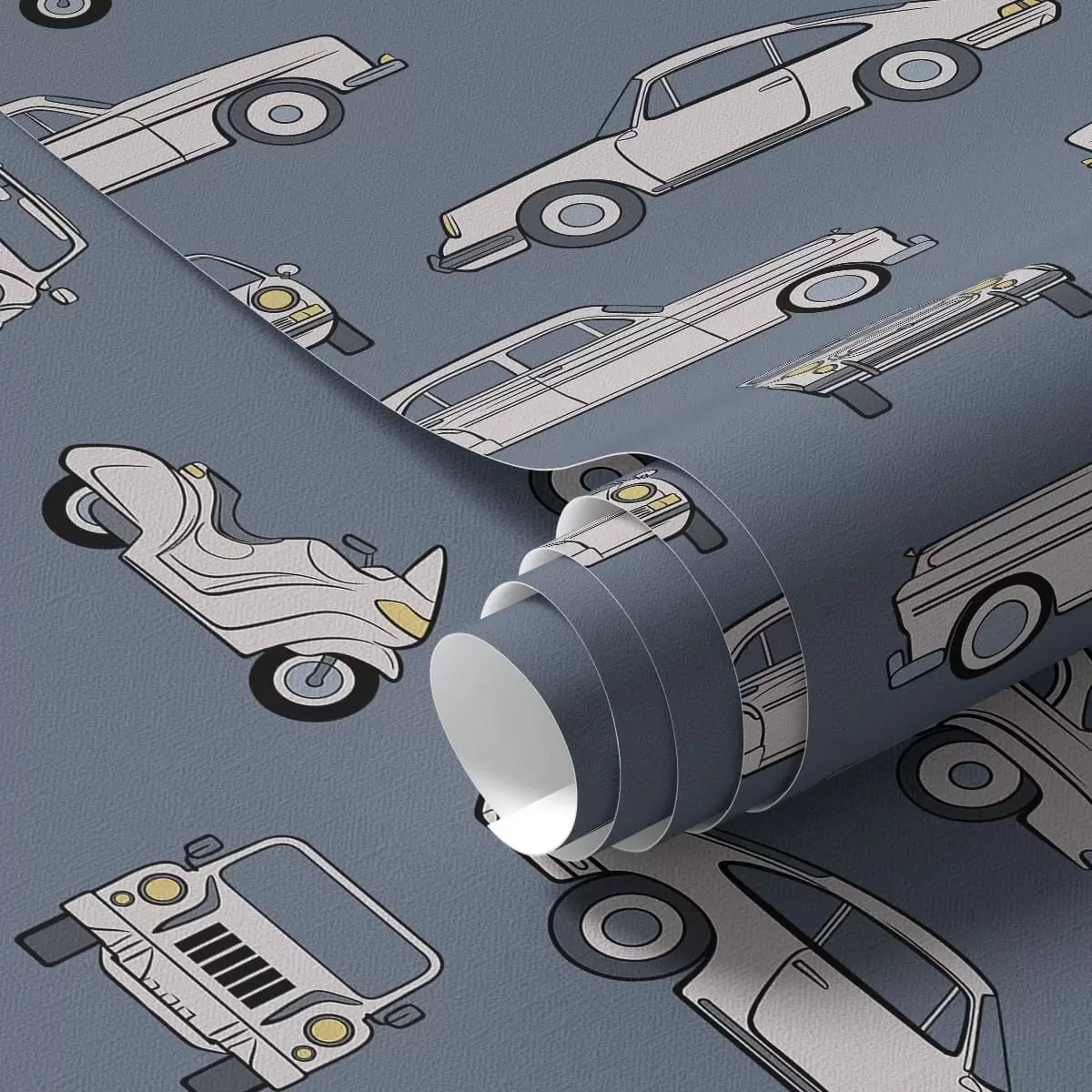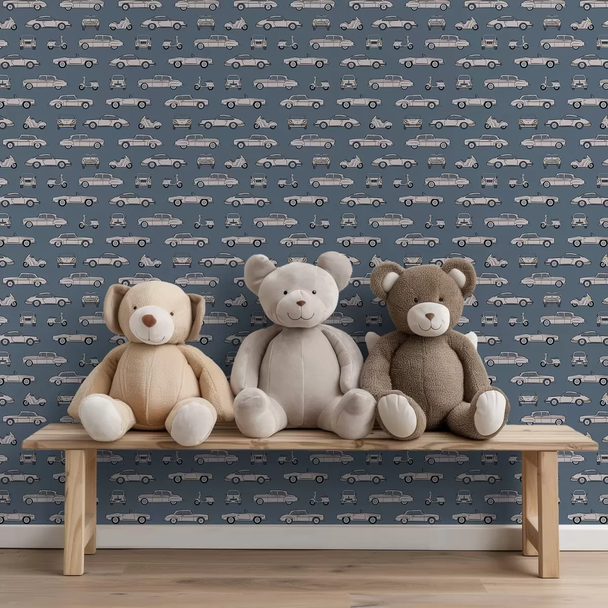 Шпалери Ретро-автомобілі та скутери на синьому тлі Nr. a01178