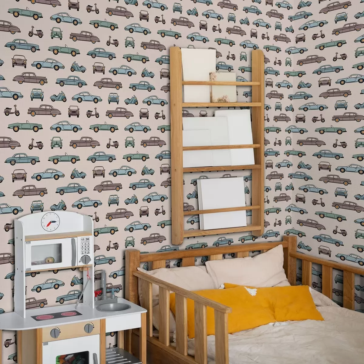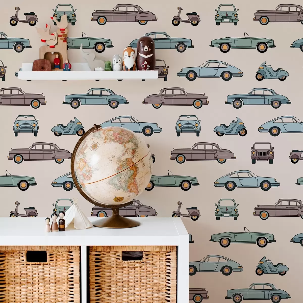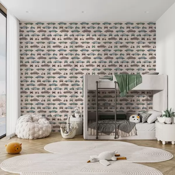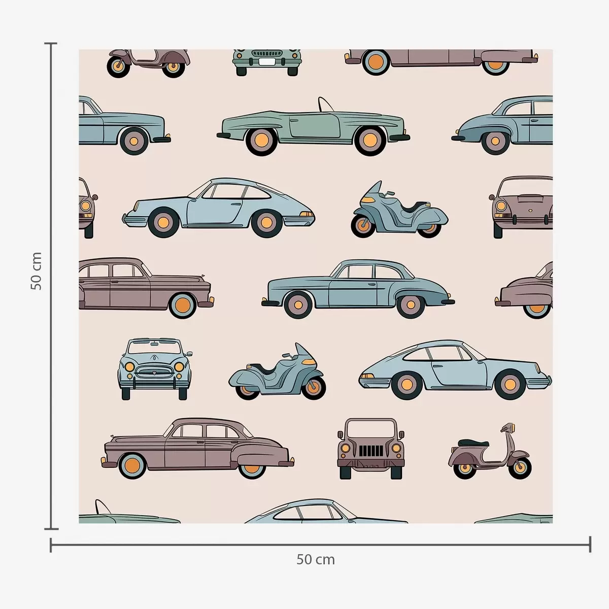 Шпалери Ретро-автомобілі та скутери на бежевому тлі Nr. a01178v1
