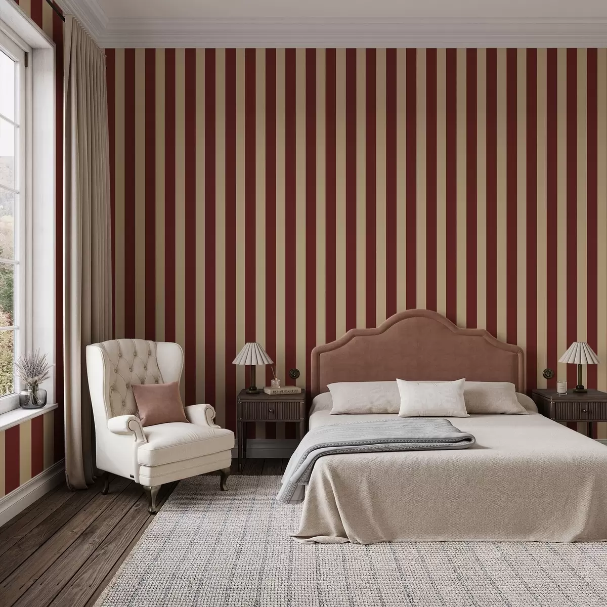 Шпалери Червоні та бежеві вертикальні смуги Nr. a01179
