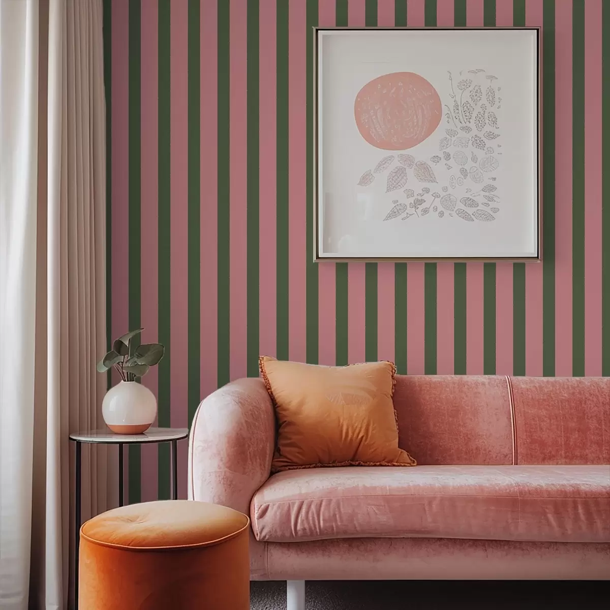 Шпалери Рожеві та зелені вертикальні смуги Nr. a01180v2