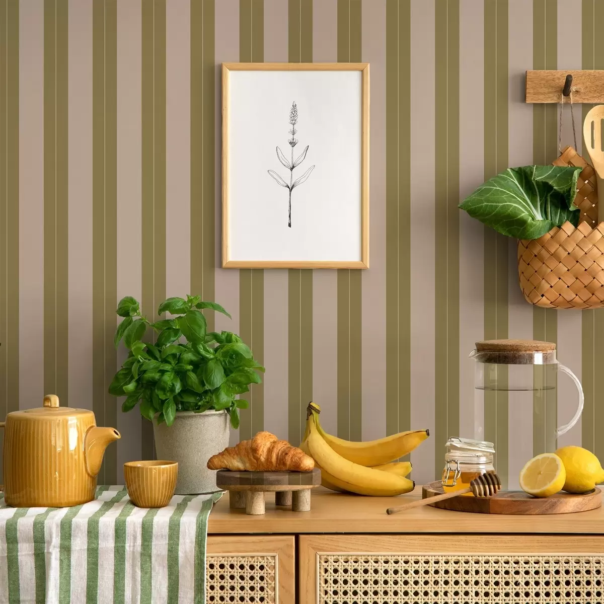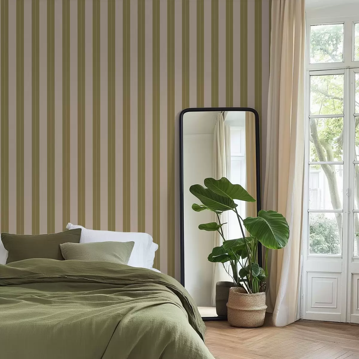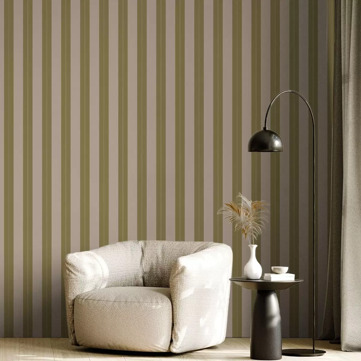 Шпалери Оливкові та бежеві вертикальні смуги Nr. a01181v2