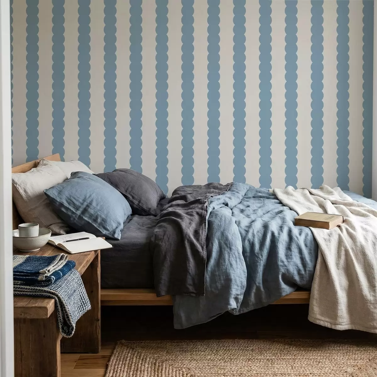 Шпалери Сині хвилясті смуги у стилі мінімалізму Nr. a01182