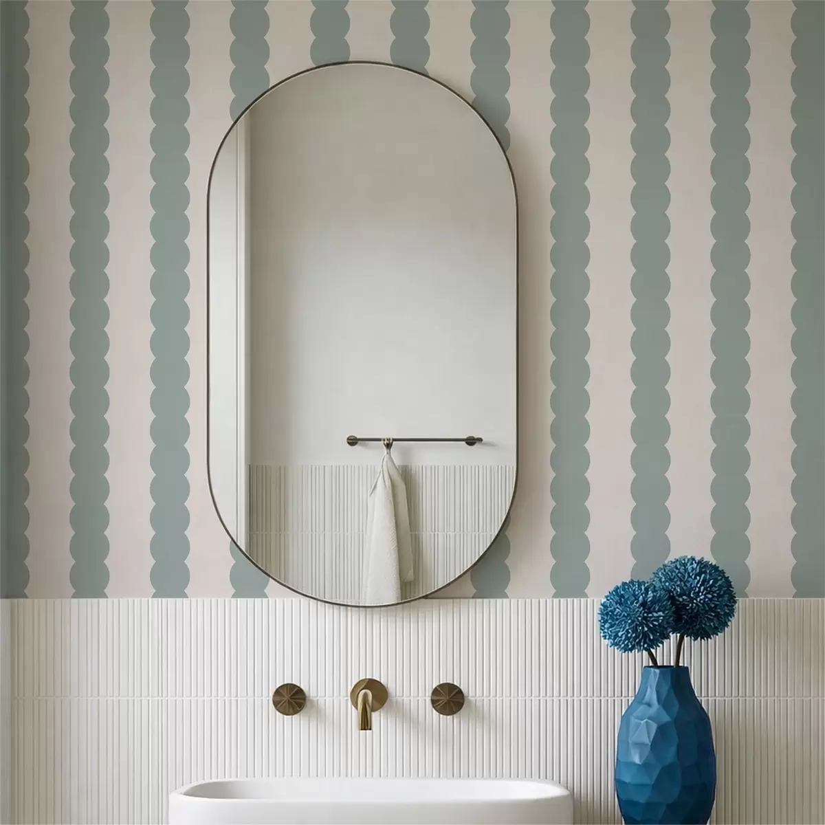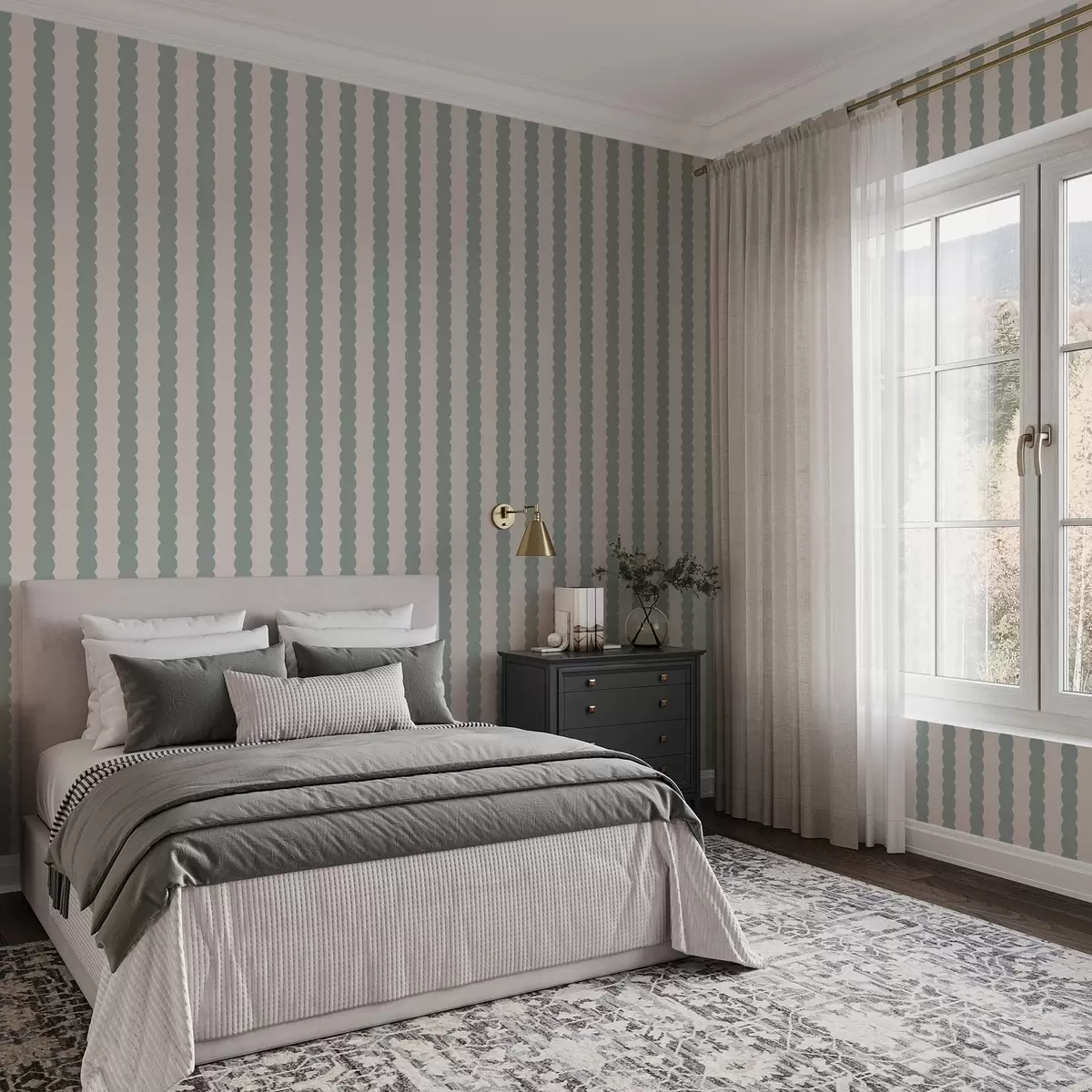 Шпалери Оливкові хвилясті смуги у стилі мінімалізму Nr. a01182v1