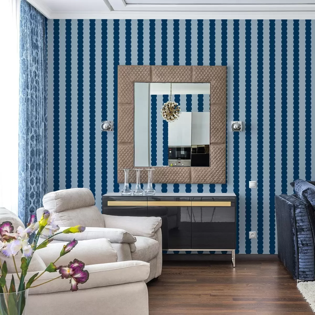 Шпалери Темно-сині хвилясті смуги у стилі мінімалізму Nr. a01182v3