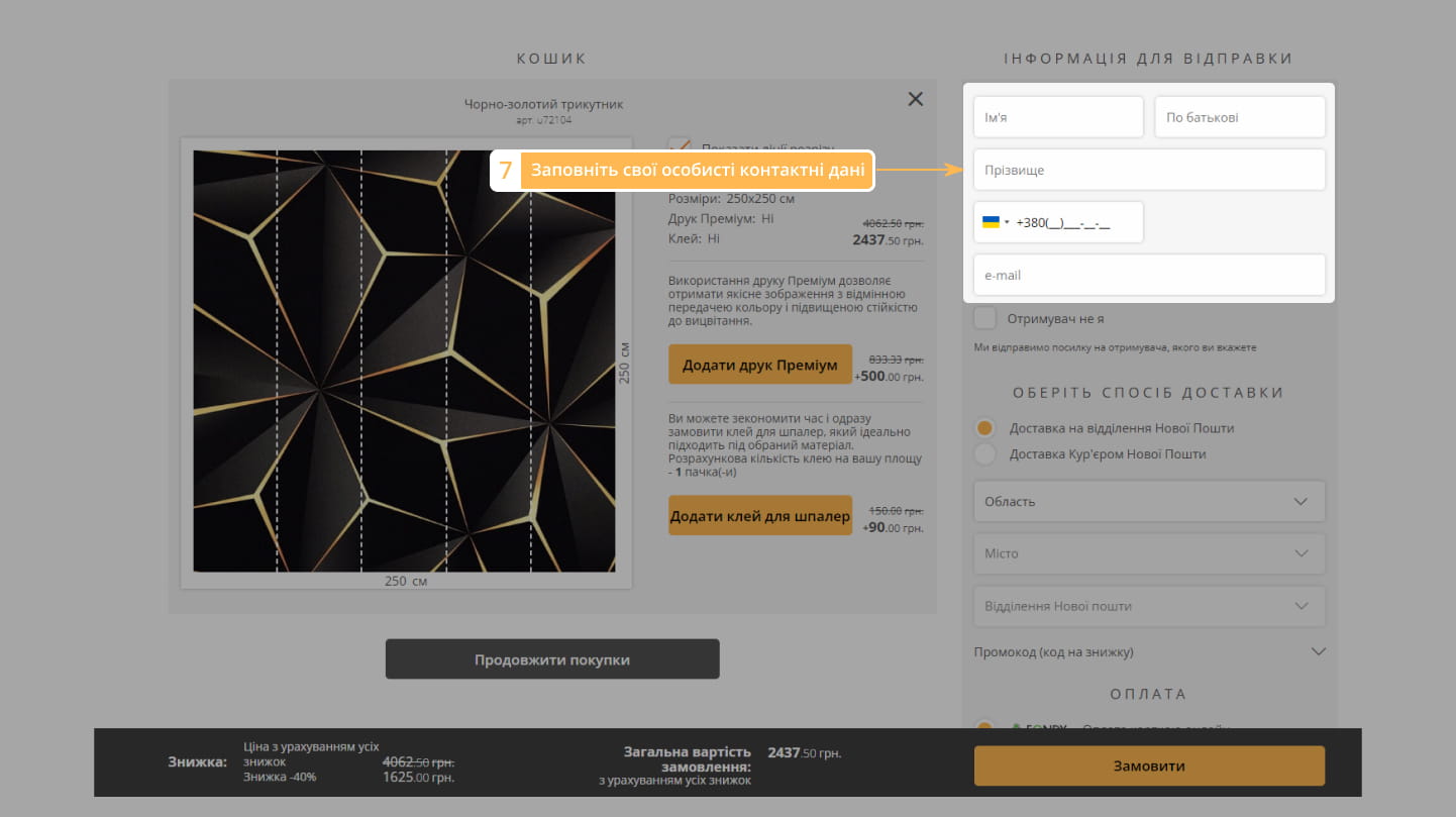 Ви можете побачити суму вашого замовлення (стрілка вказує на суму).